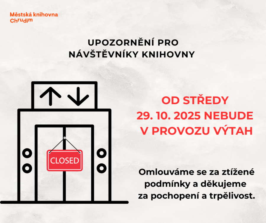 omlouváme se, ale od 29. 10. 2025 probíhá rekonstrukce výtahu a výtah bude přibližně měsíc mimo provoz.